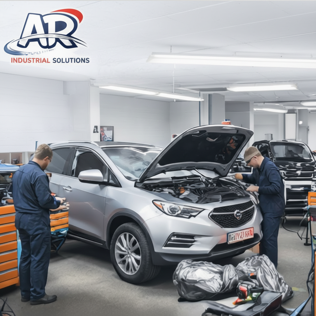AR Industrial Solutions supplies a wide range of auto body parts and workshop equipment including headlights, bumpers, mirrors, compressors, and tools used in automotive repair and maintenance.